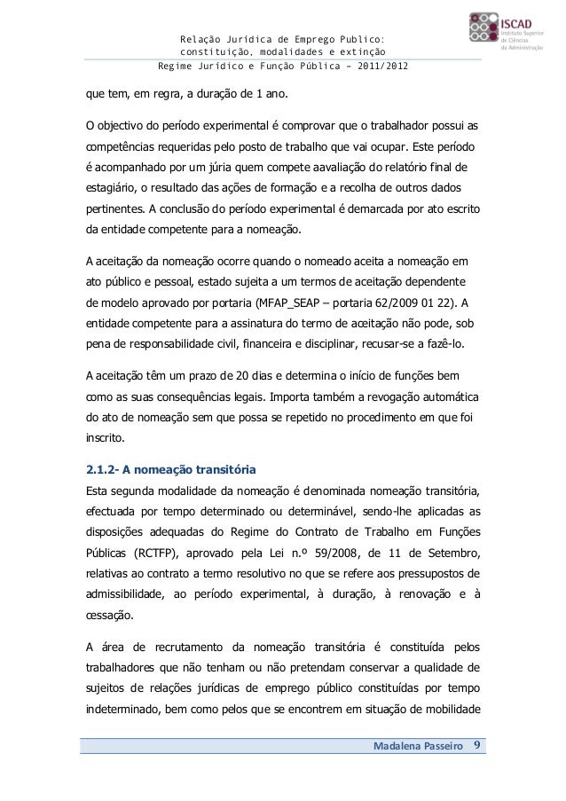 ANEXO I - para a realização de período experimental” de contratos. O regime das pré-reformas por suspensão de prestação de trabalho. Geral de Trabalho em Funções Públicas (LTFP),. Recrutamento de técnicos superiores na modalidade de contrato de trabalho em funções públicas por tempo indeterminado , para o exercício de funções no . Mais de mil trabalhadores precários da administração pública foram. Há ainda funções cuja legislação impõe que o vínculo seja o contrato de.